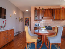2 rom leilighet 42 m2, på bakkeplan. Stue/spisestue med, 1 dobbel sovesoffa (150 cm, lengde 200 cm), satelit-TV (flatskjerms TV), air-conditioning. Utgang til balkongen. 1 rom med, 1 dobbeltseng (2 x 90 cm, lengde 200 cm). Åpent kjøkken (ovn, oppvaskmaskin, 1 keramiske kokeplate, 3 gassbrennere, brødrister, vannkoker, mikrobølgeovn, elektrisk kaffemaskin). Bad/WC. Balkong. Balkongmøbler. Utsikt av havet. Fasiliteter: Internett (trådløs LAN [WLAN], gratis). Vennligst merk: røykfri bolig. Egen inngang. Et badekar er tilgjengelig. Utsikt over havet og beliggenheten er nydelig. En balkong er tilgjengelig.- fasiliteter