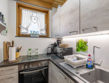 "Schihütte", 2 rom leilighet 34 m2 i 1st etasje. Koseligt og træ møblement møbler: inngang. 1 rom med 2 senger (80 cm lengde 190 cm). Stue/soverom med, 2 sovesoffaer (90 cm, lengde 200 cm), spisehjørne og kabel-TV (flatskjerms TV). Utgang til balkongen. Lite kjøkken (stekeovn, 4 keramiske kokeplater, mikrobølgeovn). Dusj/WC. Balkong 9 m2. Balkongmøbler elektrisk grill. Vakker utsikt av fjellene og skibakkene. Fasiliteter: hårføner. Internett (trådløs LAN [WLAN], gratis). Parkeringsplass. Vennligst merk: røykfri bolig. Røykvarsler. 50628-001395-2020 Nyt dusjet og lukter du kan slappe av på ferien programmet, fordi en dusj er tilgjengelig. En overbygd parkering er tilgjengelig.- fasiliteter