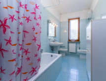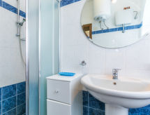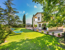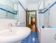 7 rom hus 250 m2 på 2 etasjer. Romlig, enkelt og komfortabelt møbler: stue/spisestue med, åpen peis, spisebord og TV. Utgang til loggiaen. Studio med panoramavindu med, 1 dobbel sovesoffa og air-conditioning. Utgang til hagen. 1 dobblet rom med, dusj/bidèt/WC. 1 dobblet rom. Lite, åpent kjøkken (stekeovn, oppvaskmaskin, 4 gassbrennere, brødrister). Utgang til loggiaen. Dusj/bidé/WC. øverste etasje: (utendørs trapp) stue/spisestue med, åpen peis, spisebord, kjøkkenhjørne og TV. Utgang til terrassen. 2 dobbelt rom, hvert rom med, air-conditioning. Dusj/bidé/WC. Gassoppvarming. 2 balkonger, 2 store terrasser dekt, sitteplass i hagen. Terrassemøbler, grill. Ved siden utsikt av havet og landskapet. Fasiliteter: vaskemaskin, strykejern. Internett (trådløs LAN [WLAN], gratis). Kjæledyr / hund tillatt 1 kjæledyr / hund tillatt. Ingen innvendig dør mellom etasjene. Skal den kjære hunden bli plassert i et dyreslag i ferien? Nei, de firebenede vennene tilhører familien, og uten ham er en perfekt ferie praktisk talt utenkelig og derfor velkommen her. Eiendommen er helt inngjerdet. Len deg tilbake, ferien følelsen begynner i den tilhørende hagen. Det er en veranda. Den har oppvaskmaskin. Huset er også utstyrt med parkeringsplass. Huset er også utstyrt med en overbygd parkeringsplass. Den har en komfyr.- fasiliteter