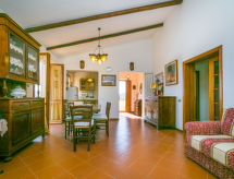 Koselig, rustikk hus "I Limoni", med 2 etasjer, omgitt av enger og jorder. 3.5 km fra sentrum av Capalbio, i en solrikt posisjon, 50 m fra skogskanten, 9 km fra sjøen, i det grønne. Privat: vakker, velholdt hage m2 500 ha (inngjerdet) med plen og planter. Lysthus, hagemøbler, grill, overdekket, parkering ved hbrukt. Butikk 3.5 km, daglivarehandel 3.5 km, supermarked 6 km, restaurant 3.5 km, togstasjon "Capalbio Scalo" 6 km, sandstrand "Macchiatonda" 8 km, termalbad "Saturnia" 44 km. Golfbane(18 hull) 25 km. Attraksjoner i nærheten: Giardino dei Tarocchi 7 km, Feniglia 18 km, Orbetello 21 km, Monte Argentario 25 km. Vennligst merk: bil anbefales. Grupper med tenåringer- bare ved forespørsel. Oppdag seilruter i regionen som tar deg til de mest fantastiske naturområdene og landskapene.Interior
