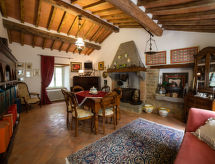 Fin, koselig hus på landet "Il Cherubino", frittstående, omgitt av jorder. 3 km fra sentrum av Cortona, i det grønne. Privat: hage m2 1'000 ha (uten gjerde), svømmebasseng (6 x 12 m, dybde 140- 200 cm dyp, Sesongåpent: 01.Mai. - 30.Sep.). Utendørs dusj, bordtennis, hagemøbler, grill, grillplass. Kokk på forespørsel (ekstra). Tilgang med bil hele veien (100 m naturvei). Parkering på tomten. Daglivarehandel 3 km, supermarked 3 km, restaurant 2 km, togstasjon "Camucia" 3 km, termalbad "Rapolano Terme" 46 km, badevann "Trasimeno" 13 km. Attraksjoner i nærheten: Castiglion Fiorentino 14 km, Castiglione Del Lago 16 km, Passignano Sul Trasimeno 19 km, Arezzo 26 km, Montepulciano 30 km, Pienza 46 km. Vennligst merk: bil anbefales. Eieren godtar ikke noen ungdomsgrupper.Interior