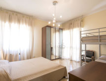 "Il Litorale", 3 rom leilighet 70 m2 i 2nd etasje. Lys, enkelt og praktiskt møbler: stue med, 1 dobbel sovesoffa, spisebord, TV og air-conditioning. Utgang til balkongen. 1 dobblet rom med, 1 x 2 køysenger, air-conditioning. 1 rom med, 1 dobbeltseng og air-conditioning. Kjøkken (5 kokeplater, oppvaskmaskin, elektrisk kaffemaskin) med spisebord. Utgang til balkongen. Dusj/bidé/WC. Gassoppvarming. 2 balkonger. Fasiliteter: vaskemaskin. Internett (trådløs LAN [WLAN], gratis). Parkeringsplass (inngjerdet, 1 Bil) ved hbrukt. Selv om det forblir så varmt om natten, er det fint, du kan skru på klimaanlegget og sove i et hyggelig, temperert inneklima.- fasiliteter