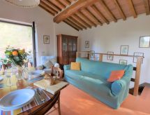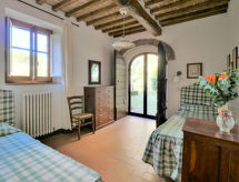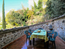 "Il Pozzo", 3 rom hus 55 m2 på 2 etasjer. Rustikt og smakfullt møbler: i underetasje: 1 dobblet rom. 1 rom med 2 senger. Utgang til hagen. Dusj/WC. Gassoppvarming. øverste etasje: (utendørs trapp) stue med, satelit-TV. Kjøkken/stue (ovn, oppvaskmaskin, 4 gassbrennere, brødrister, frys, elektrisk kaffemaskin) med, spisebord. Utgang til terrassen. Terrasse 10 m2, sitteplass i hagen, hage, plen. Terrassemøbler. Panoramautsikt. Fasiliteter: vaskemaskin, myggnett, høy barnestol barneseng. Internett (trådløs LAN [WLAN], gratis). Vennligst merk: røykfri bolig. Kjæledyr/små hunder tillatt 2 kjæledyr/små hunder tillatt. Huset er også utstyrt med veranda. Den har et barnebasseng.- fasiliteter