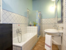 4 rom hus 120 m2 på 2 etasjer, på bakkeplan. Rustikt og smakfullt møbler: stor stue/spisestue med, åpen peis og satelit-TV. Utgang til terrassen. 1 stort dobblet rom. Kjøkkenkrok (4 kokeplater, miniovn, oppvaskmaskin, mikrobølgeovn). Bad/dusj/WC. I underetasje: åpen stue med, 1 dobbel sovesoffa, satelit-TV og DVD. Utgang til hagen. 1 rom med 2 senger. Dusj/bidé/WC. Oppvarming (ekstra). Stor terrasse. Terrassemøbler, grill, liggestoler. Vakker utsikt av landskapet. Fasiliteter: Internett (trådløs LAN [WLAN], ekstra). Kjæledyr / hund tillatt 1 kjæledyr / hund tillatt. En dusj er til stede, og daglig rengjøring under dusjen tar ikke mye tid, så mer er igjen for ferien. Den har en baby seng. Den har en brannpit. Det har et privat basseng. Huset er også utstyrt med internettforbindelse. En DVD-spiller er tilgjengelig.- fasiliteter