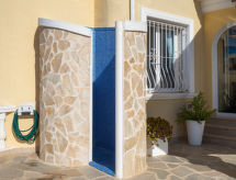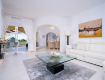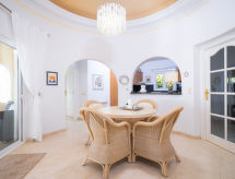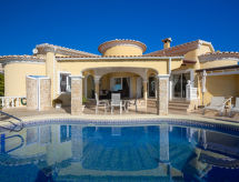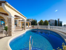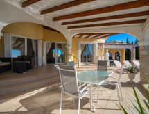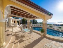 Cumbre del Sol: Meget fin, komfortabel hus "Ingrid". 6 km fra sentrum av Moraira, i en roligt, solrikt posisjon, 1.3 km fra sjøen, 1.3 km fra stranden. Privat: tomt 1'000 m2, vakker, velholdt hage, svømmebasseng nyre-formet (4 x 8 m, dybde 150- 200 cm dyp, Sesongåpent: 01.Jan. - 31.Des.) med innebygde trapper. Utendørs dusj, grill. I hbrukt: sentralvarme. Parkering på tomten. Supermarked 2.4 km, restaurant 2.4 km, bar 2.4 km, sandstrand 6 km småstenstrand 2.4 km. Vennligst merk: bil anbefales. Velegnet for barnefamilier, passer for eldre.Interior