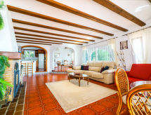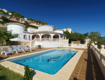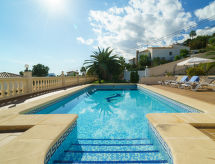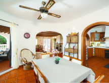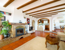 Meget fin villa "Iris". 3.5 km fra sentrum av Moraira, i en roligt, solrikt, høyt posisjon, 3.1 km fra sjøen, 4 km fra stranden, ligger ved en mindre vei. Privat: tomt (inngjerdet), svømmebasseng kantete (5 x 10 m, Sesongåpent: 01.Jan. og 31.Des.) med innebygde trapper. Dusj/WC ved bassenget, hagemøbler, grill. I hbrukt: trådløst LAN [WLAN], airconditioning, vaskemaskin, tørketrommel. Parkering (for 2 biler). Butikk 3.3 km, daglivarehandel 2.6 km, supermarked 2.6 km, kjøpesenter 3.3 km. Golfbane(9 hull) 2 km. Vennligst merk: bil anbefales. Velegnet for barnefamilier. Grupper med tenåringer- bare ved forespørsel. Oppdag seilruter i regionen som tar deg til de mest fantastiske naturområdene og landskapene. Enten profesjonell eller amatør, ikke nøl med og trene avrundingen på den nærliggende golfbanen.Interior