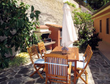 "Irma (SNM120)", 3 rom hus 167 m2 på 2 etasjer. Romlig, rustikt og stilfullt møbler: stue/soverom med, 1 dobbel sovesoffa (140 cm), spisebord, satelit-TV, stereoanlegg og DVD. Utgang til terrassen. 2 rom, hvert rom med 1 seng (80 cm), 1 dobbeltseng (160 cm). Utgang til balkongen. Inngang med 1 seng (80 cm). Stort kjøkken (ovn, oppvaskmaskin, 4 gassbrennere, brødrister, mikrobølgeovn, frys, elektrisk kaffemaskin) med spisebord. Bad/bidé/WC, dusj/bidé/WC. I underetasje: dusj/WC. Airconditioning, varmluftsoppvarming. Terrasse, stor terrasse 40 m2, med tak. Terrassemøbler, grill, liggestoler (2). Meget vakker utsikt av havet, havnen og viken. Fasiliteter: vaskemaskin, høy barnestol barneseng. Max kjæledyr/små hunder tillatt 2 kjæledyr/små hunder tillatt. CITRA: 008021-LT-0034 Gir spektakulær utsikt over havet. Egnet for grilling. En overbygd parkering er tilgjengelig. Du er mer selvstendig med den spesielle vaskemaskinen. Huset er også utstyrt med en DVD-spiller.- Kjennetegn ved boligen
