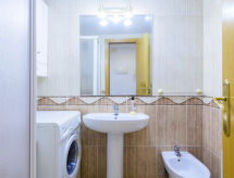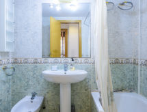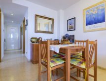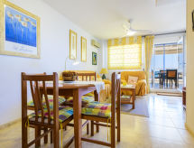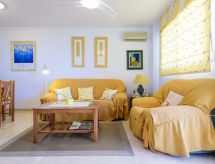 "Isla Park - Frontal", 3 rom leilighet 60 m2 i 7th etasje. Praktiskt og komfortabelt møbler: stue/spisestue med, spisebord, digital TV, flatskjerms TV, air-conditioning og varmluft oppvarming. Utgang til terrassen. 1 rom med, 1 dobbeltseng (2 x 90 cm, lengde 190 cm), bad/bidèt/WC. 1 dobblet rom med 2 senger (90 cm lengde 190 cm). Kjøkken (4 kokeplater, stekeovn, oppvaskmaskin, brødrister, mikrobølgeovn, frys, elektrisk kaffemaskin). Dusj/bidé/WC. El-oppvarming. Stor terrasse 60 m2. Terrassemøbler. Vakker utsikt av havet. Fasiliteter: vaskemaskin, strykejern, hårføner. Internett (trådløs LAN [WLAN], gratis). Parkeringsplass plass nr 219 (overdekt) ved hbrukt. Vennligst merk: røykfri bolig. VT-42149-CS Dessverre er det ikke lov å røyke i denne innkvarteringen. Et barnebasseng er tilgjengelig. Takket være vaskemaskinen finner du mindre klær å bære. Et trådløst LAN (trådløst lokalnettverk) er tilgjengelig.- Kjennetegn ved boligen