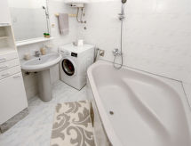 4 rom hus 100 m2, beliggenhet mot sør. Stue/spisestue med, satelit-TV (flatskjerms TV), air-conditioning. Utgang til terrassen. 1 rom med, 1 dobbeltseng (160 cm, lengde 200 cm). 1 rom med, 1 x 2 køysenger (90 cm, lengde 200 cm), dusj/WC. 1 rom med, 1 dobbeltseng (2 x 90 cm, lengde 200 cm). Åpent kjøkken (4 kokeplater, ovn, oppvaskmaskin). Bad/bidé/WC med hjørnebadekar. Terrasse 28 m2 delvis dekt. Terrassemøbler. God utsikt av havet. Fasiliteter: hårføner. Internett (trådløs LAN [WLAN], gratis). For ditt velvære, nyt boblebadet i ferien. Den undertrykkende varmen kan legge stor belastning på kropp og sinn. Derfor er lokalene utstyrt med air condition. Passer til grill. En oppvaskmaskin er tilgjengelig. Et privat basseng er tilgjengelig. Et trådløst LAN (trådløst lokalnettverk) er tilgjengelig.- Aktiviteter i nærheten