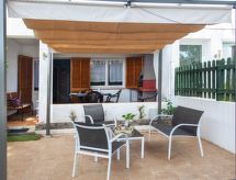 "Casa Izaila", 3 rom rekkehus 80 m2. Komfortabelt og koseligt møbler: stue/spisestue med, spisebord, satelit-TV, digital TV og vifte. 1 rom med, 1 dobbeltseng (150 cm), air-conditioning og vifte. 1 rom med, 1 x 1 køysenger (90 cm), 1 dobbeltseng (135 cm). Åpent kjøkken (4 kokeplater, stekeovn, brødrister, vannkoker, elektrisk kaffemaskin). Dusj/WC. Oppvarmingsalternativ. Sitteplass i hagen. Terrassemøbler, grill, overbygd balkong. Fasiliteter: vaskemaskin, strykejern, hårføner. Internett (trådløs LAN [WLAN], gratis). Parkeringsplass ved hbrukt. Vennligst merk: bare TV DE, FR, ES. HUTTE001559 Med inngjerdet tomt. Den undertrykkende varmen kan legge stor belastning på kropp og sinn. Derfor er lokalene utstyrt med air condition. Den har en parkeringsplass. Et privat basseng er tilgjengelig.- fasiliteter