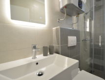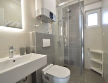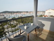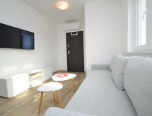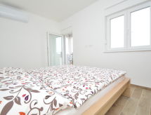 2 rom leilighet 43 m2 i 1st etasje, beliggenhet mot nord-vest. Stue/spisestue 20 m2 med, 1 dobbel sovesoffa (150 cm, lengde 200 cm), satelit-TV (flatskjerms TV), air-conditioning. Utgang til terrassen. 1 rom med, 1 dobbeltseng (2 x 80 cm, lengde 200 cm), air-conditioning. Utgang til terrassen. Åpent kjøkken (oppvaskmaskin, 4 keramiske kokeplater, brødrister, vannkoker, mikrobølgeovn, elektrisk kaffemaskin). Dusj/WC. Terrasse 5 m2, dekt. Terrassemøbler. Utsikt av havet. Fasiliteter: vaskemaskin. Internett (trådløs LAN [WLAN], gratis). Max 1 lite kjæledyr / liten hund tillatt. Overrasket med en fantastisk utsikt over havet.- fasiliteter