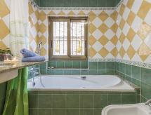 Centre: Koselig, rustikk leilighetshus "JOLI", med 2 etasjer. I sentrum av Rosas, i en sentrale, travelt posisjon, område med lite trafikk, 300 m fra sjøen, 300 m fra stranden. Daglivarehandel, supermarked 100 m, restaurant, bar 10 m, bakeri, område bare for gående 50 m, sandstrand "Rosas" 300 m. Sporthavn 700 m, golfbane(18 hull) 15 m, surfeskole, seileskole 700 m, tennis 1 km, minigolf 500 m, idrettsenter 900 m. Attraksjoner i nærheten: Restaurante en mismo edificio. Leiligheten ligger i et område med begrensed trafi. Det perfekte reisemål for en golfferie. Roses tilbyr de beste forholdene for golf. På steder hvor grøntvoktere opprettholder frodige greener og mynte fairways. Jakt ballen over nettet med et spill tennis på den lokale tennisbanen.Interior