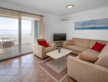 3 rom leilighet 60 m2 i 1st etasje, beliggenhet mot sør. Stue/spisestue med, satelit-TV (flatskjerms TV), air-conditioning. Utgang til balkongen. 1 rom med, 1 dobbeltseng (2 x 90 cm, lengde 200 cm). 1 rom med, 1 dobbeltseng (140 cm, lengde 200 cm), air-conditioning. Åpent kjøkken (2 kokeplater, oppvaskmaskin). Dusj/WC. Varmluftsoppvarming. Balkong 12 m2. Balkongmøbler. Vakker utsikt av havet. Fasiliteter: vaskemaskin. Internett (trådløs LAN [WLAN], gratis). Med utsikt over havet. Kom inn og føl deg den forfriskende brisen i klimaanlegget. Egnet for grilling.- fasiliteter