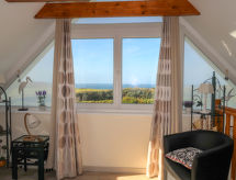 "Kerludu", 5 rom hus 130 m2 på 3 etasjer. Vakkert og rustikt møbler: stor stue/spisestue med på med, TV (flatskjerms TV). Åpent kjøkken (stekeovn, oppvaskmaskin, 4 induksjonskomfyr, brødrister, vannkoker, mikrobølgeovn, elektrisk kaffemaskin) med spisebord. Dusj, sep. WC, dobbel servant. øverste etasje: 1 rom med skråtak cm 175 cm med 1 seng (90 cm), 1 dobbeltseng (140 cm). 1 litet rom med skråtak cm 175 cm med, 1 dobbel sovesoffa (1 x 140 cm, lengde 190 cm). Salong, med skråtak. øverste etasje: (bratt trapp), 1 rom med skråtak Lav dørhøyde 130 cm 178 cm med, 1 dobbeltseng (140 cm). El-oppvarming. Terrassemøbler, grill, liggestoler (4). Vakker panoramautsikt av havet. Fasiliteter: vaskemaskin, tørketrommel. Vennligst merk: røykfritt hus. Røykvarsler. The room can only be accessed from outside, through an independant store room, with spare shower. Separated WC. Hen house 10m. Panoramic view of the "Pointe du Raz" from the upper floor living room. Gir spektakulær utsikt over havet. Huset er også utstyrt med en tørketrommel.- fasiliteter