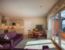 2 rom hytte på 2 etasjer. Romlig og lys, komfortabelt og smakfullt møbler: åpen stue med, TV, flatskjerms TV og DVD. 1 dobblet rom med, 1 dobbeltseng. Åpent kjøkken (4 kokeplater, ovn, oppvaskmaskin, mikrobølgeovn, frys) med spisebord. Dusj/WC. Oppvarming. øverste etasje: åpen stue/spisestue med, TV (flatskjerms TV). Kjøkken (4 kokeplater, ovn, oppvaskmaskin, mikrobølgeovn, frys). Terrassemøbler, balkongmøbler. Vakker utsikt av havet. Fasiliteter: vaskemaskin, tørketrommel. Internett (trådløs LAN [WLAN], gratis). Vennligst merk: røykfritt hus. Den har en veranda. Det er en DVD-spiller. En mikrobølgeovn er også tilgjengelig.- fasiliteter
