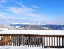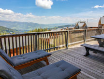 5 rom hytte 115 m2. Lys, smakfullt og træ møblement møbler: inngang. Åpen stue med, satelit-TV (flatskjerms TV). Utgang til terrassen. Kjøkken/stue (stekeovn, oppvaskmaskin, 4 keramiske kokeplater, brødrister, vannkoker, mikrobølgeovn, frys, grill, elektrisk kaffemaskin) med, åpen peis og spisehjørne. Dusj/WC. Toppetasje: 1 rom med, 1 dobbeltseng og satelit-TV. Utgang til balkongen. 1 rom med, 1 dobbeltseng. Utgang til balkongen. 1 rom med, 1 dobbeltseng. 1 dobblet rom med 2 senger. Bad/dusj/WC, massasjedusj, boblebad. Gassoppvarming. Tregulv. Balkong. Balkongmøbler elektrisk grill, liggestoler. Hærlig panoramautsikt av fjellene og landskapet. Fasiliteter: vaskemaskin, tørketrommel, hårføner. Internett (trådløs LAN [WLAN], gratis). Vennligst merk: velegnet for familier. Røykfritt hus. Max kjæledyr / hund tillatt 1 kjæledyr / hund tillatt. Brannslukkningsapparat. For ditt velvære, nyt boblebadet i ferien. Passer til grill. Huset er også utstyrt med peis. Den har en Internett-tilkobling. Et trådløst LAN (trådløst lokalnettverk) er tilgjengelig.- fasiliteter