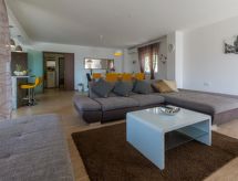 6-rom hus for 10 mennesker, 210 m2 på 2 etasjer, komfortabelt og moderne møbler. Stue/sove rom med satelit-TV og dinette. Røyking ikke tillatt. Internett (Wireless LAN [WLAN]). 1 utdragbar seng. Sove rom med 1 dobbel seng. Sove rom med 1 dobbel seng. Sove rom med 1 dobbel seng. Sove rom med 1 enkel seng. Sove rom med 1 enkel seng. Kjøkken med 4 varme plater, mikro wave, oven, spise bord, oppvaskmaskin, fridge og dyp fryser. Hip bad/WC og bad/shower/WC. Balkong 28 m2, terrasse 100 m2, terrasse møbler. Annet utstyr: vaskemaskin. Egnet for grilling. Et basseng er tilgjengelig. En vaskemaskin er tilgjengelig for bruk. Det er et bordtennisbord. For å forberede noe raskt selv, er en mikrobølgeovn klar.- Kjennetegn ved boligen
