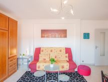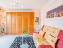 1 rom etromsleilighet 30 m2 i 2nd etasje. Komfortabelt møbler: stue med panoramavindu med, 1 dobbel sovesoffa (140 cm, lengde 190 cm), 1 dobbel skapseng (160 cm, lengde 190 cm), spisebord og TV (flatskjerms TV). Utgang til balkongen. Kjøkken (4 kokeplater, ovn, brødrister, vannkoker, mikrobølgeovn, frys, elektrisk kaffemaskin, Internet(NESPRESSO), ekstra). Utgang til balkongen. Bad/WC. Oppvarming. Balkong 7 m2. Balkongmøbler. Utsikt av området. Fasiliteter: vaskemaskin, strykejern, hårføner. Internett (trådløs LAN [WLAN], gratis). Vennligst merk: røykfritt hus. 1 lite kjæledyr / liten hund tillatt. Røykvarsler. Bad i huset. Husdyr er tillatt. Dermed kan hund og eier eller eier sammen tilbringe den beste tiden på året. Ferieboligen har en passasjerheis.- fasiliteter