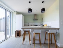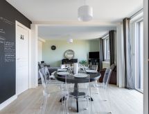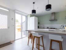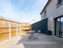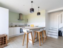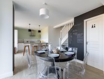 Rekkehus med 2 etasjer, renovert i 2020. I området la Hulotais, i en roligt posisjon i et boligområde, område med lite trafikk, 4 km fra sjøen, 4 km fra stranden. Privat: tomt (inngjerdet). Terrasse (70 m2), hagemøbler, grill. I hbrukt: solterrasse. Parkering (for 2 biler) ved hbrukt i 30 m avstand. Butikk, daglivarehandel, kjøpesenter, restaurant, bakeri 800 m, bussholdeplass "Onfroy" 270 m, togstasjon "Gare TGV" 3.1 km, ferje "Gare maritime du Naye" 4.2 km, sandstrand "du Sillon" 4 km, park "La Briantais" 3.2 km, termalbad "Thermes marins de St Malo" 3.8 km. Tennisklubb 3 km, rideskole 6.7 km. Attraksjoner i nærheten: St Malo Intra-muros 4.7 km, Dinard 9.6 km, Dinan 27 km, Cancale 14 km, le grand aquarium de St Malo 2.6 km, Le mont St Michel 41 km. Vennligst merk: bil anbefales. Ikke glem å gå på tur og vandre støvler! Området er flatt og er ideelt for en dagstur til fots.Interior