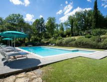 8 rom hus 360 m2 på 2 etasjer, på bakkeplan. Meget komfortabelt og smakfullt møbler: stor stue/spisestue med, åpen peis, satelit-TV og flatskjerms TV. 1 dobblet rom. Kjøkken (5 kokeplater, stekeovn, oppvaskmaskin, mikrobølgeovn, frys). Dusj/bidé/WC, sep. WC. øverste etasje: 1 dobblet rom med, dusj/bidèt/WC. 1 rom med 2 senger og dusj/bidèt/WC. 1 dobblet rom. 1 rom med 2 senger. 1 rom med 2 senger. 1 dobblet rom. 2 dusjer/bidéer/WC. Terrassemøbler, grill. Panoramautsikt av landskapet. Fasiliteter: vaskemaskin, telefon (ekstra), høy barnestol. Internett (trådløs LAN [WLAN], gratis). Kjæledyr / hund tillatt 1 kjæledyr / hund tillatt. Eiendommen er helt inngjerdet. Et privat basseng er tilgjengelig. Et barnebasseng er tilgjengelig. Takket være vaskemaskinen finner du mindre klær å bære.- fasiliteter