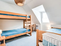 5 rom hus 100 m2 på 2 etasjer. Vakkert møbler: stue/spisestue med, TV (flatskjerms TV). Utgang til terrassen. 1 rom med, 1 dobbeltseng (1 x 140 cm, lengde 190 cm), dusj. Åpent kjøkken (ovn, oppvaskmaskin, 3 keramiske kokeplater, mikrobølgeovn, elektrisk kaffemaskin). Sep. WC. øverste etasje: 1 rom med, 1 dobbeltseng (1 x 140 cm, lengde 190 cm). 1 rom med 1 seng (90 cm lengde 190 cm), 1 dobbeltseng (1 x 140 cm, lengde 190 cm). 1 rom med 1 seng (90 cm lengde 190 cm), 1 x 2 køysenger (90 cm, lengde 190 cm). Bad/WC. El-oppvarming. Terrassemøbler, liggestoler (2). Fasiliteter: vaskemaskin. Internett (trådløs LAN [WLAN], gratis). Vennligst merk: røykvarsler.- Aktiviteter i nærheten