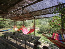 Siuated in the heart of the Tuscan maremma, surrounded by olive trees and vineyards, 35 km from Castiglion della Pescaia and 70 km from the Monte Amiata. The farm has a semidetached house which has been renovated keeping the original features and country style. 2 lovely private terraces and gazebos with hammocks are ideal for people looking for a relaxing holiday. Oven for pizza and bread. The swimming pool is few meters away, in front of the house, ideal for checking on the children. There is also a pretty private chapel still in use. The sorroundings are rich in archeological sites and lovely landscapes. Roselle 15 km, Saturnia Spa centre 60 km, Florence 130 km, Siena 60 km, Roma 180 km. Koselig, rustikk hus på landet "La Casetta", med 2 etasjer, renovert, omgitt av vingårder. 12 km fra sentrum av Grosseto, 12 km fra sentrum av Campagnatico, 18 km fra sentrum av Roccastrada, i en roligt, solrikt posisjon på toppen av en høyde, 25 km fra sjøen, i det grønne. Fellesbruk: tomt 5 ha. Privat: hage, frukthage, svømmebasseng (8 x 4 m, dybde 140 cm, Sesongåpent: 30.Apr. - 30.Okt.). Pergola, terrasse, hagemøbler, grill. I hbrukt: internetilkobbling, solterrasse, oppvarming kun tilgjengelig fra 01.11. til 15.04.. Tilgang med bil hele veien (1 km naturvei). Overdekket, parkering (for 4 biler) ved hbrukt. Butikk 6 km, restaurant 3 km, sandstrand 25 km, termalbad "Saturnia" 60 km. Golfbane 45 km, tennis 12 km, rideskole 6 km. Attraksjoner i nærheten: Grosseto 12 km, Roselle 15 km, Parco dell'Uccellina 25 km, Castiglione della Pescaia 35 km, Siena 60 km. Salg av lokale gårdsprodukter.Interior