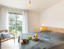 Liten residens "La Chenaie", med 3 etasjer. I sentrum av Saint Aygulf, i byens hjerte, 220 m fra sjøen, 900 m fra stranden. Fellesbruk: velholdt hage med plen og trær. Butikk 100 m, daglivarehandel 140 m, restaurant 50 m, bar 100 m, bakeri 150 m, café 140 m, sandstrand "Plage de Saint Aygulf" 900 m, strand ved klipper 220 m, park "Areca" 500 m. Sporthavn 1 km, golfbane(18 hull) 7 km, rideskole 6 km. Attraksjoner i nærheten: Aqualand 4 km, Lunapark 4 km, Fréjus 5 km, Saint Raphaël 7 km, Saint Tropez 30 km. Bygning med elektriske portener.Interior