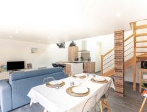 "La Cheneraie", 3 rom halvpart av tomannsbolig 65 m2. Renovert i 2020, moderne og smakfullt møbler: stue/soverom med, 1 dobbel sovesoffa (140 cm), TV (flatskjerms TV), CD-spiller og DVD. Utgang til terrassen. 1 rom med, 1 dobbeltseng (140 cm, lengde 190 cm). Åpent kjøkken (ovn, oppvaskmaskin, 4 gassbrennere, brødrister, vannkoker, mikrobølgeovn, frys, elektrisk kaffemaskin) med spisebord. Utgang til terrassen. Dusj/WC, dobbel servant. øverste etasje: 1 rom med skråtak med, 1 dobbeltseng (140 cm, lengde 190 cm). El-oppvarming. Stor terrasse 20 m2. Terrassemøbler, grill (flyttbar), liggestoler (2), lager. Vakker utsikt av skogen. Fasiliteter: vaskemaskin, strykejern, høy barnestol barneseng. Internett (trådløs LAN [WLAN], gratis). Vennligst merk: røykfritt hus. Røykvarsler. Den har en parkeringsplass. Et basseng er tilgjengelig. Du er mer selvstendig med den spesielle vaskemaskinen. En internettforbindelse er tilgjengelig. Huset er også utstyrt med en DVD-spiller.- fasiliteter