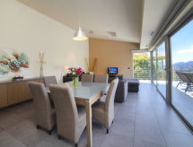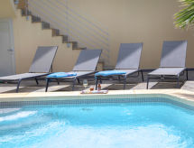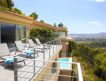 "La Estrella", 5 rom villa 276 m2 på 2 etasjer. Passer for 6 voksne + 2 barn. Romlig og lys, vakkert og moderne møbler: åpen stor stue/spisestue med, spisebord, satelit-TV, digital TV, air-conditioning og varmluft oppvarming. Åpent kjøkken (ovn, oppvaskmaskin, 4 keramiske kokeplater, brødrister, vannkoker, mikrobølgeovn, frys, elektrisk kaffemaskin) med, air-conditioning og varmluft oppvarming. Sep. WC. Oppvarming kun tilgjengelig fra 01.11. til 30.04, solenergi. I underetasje: 1 rom med, 1 dobbeltseng, bad/dusj/bidèt/WC, air-conditioning og varmluft oppvarming. Utgang til terrassen, til badebassenget. 2 rom, hvert rom med, 1 dobbeltseng, air-conditioning og varmluft oppvarming. 1 rom med, 1 x 2 køysenger, air-conditioning og varmluft oppvarming. 2 dusjer/bidéer/WC, dobbel servant. 2 store terrasser. Terrassemøbler, grill (flyttbar). Vakker utsikt av området og byen. Fasiliteter: vaskemaskin, tørketrommel, strykejern, høy barnestol barneseng for barn opp til 2 år, hårføner. Internett (trådløs LAN [WLAN], gratis). Parkeringsplass (2 Biler). Velegnet for familier. VT-488094-A Eiendommen er helt inngjerdet. I den idylliske hagen kan du nyte rekreasjon som en naturopplevelse. Klimaanlegget sørger for god romtemperatur. Fordi den følelsesvennlige faktoren spiller en viktig rolle og er viktig for oss. Egnet for grilling. Et privat basseng er tilgjengelig. Du er mer selvstendig med den spesielle vaskemaskinen. Huset er også utstyrt med en tørketrommel.- Aktiviteter i nærheten
