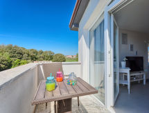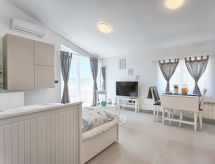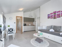 1 rom leilighet 35 m2 i 1st etasje. Studio med, 1 uttrekkbar seng (2 pers. 2 x 80 cm, lengde 200 cm), satelit-TV (flatskjerms TV), air-conditioning. Utgang til terrassen. Åpent kjøkken (2 keramiske kokeplater, mikrobølgeovn, elektrisk kaffemaskin) med spisebord. Dusj/WC. Varmluftsoppvarming. Terrasse 8 m2 delvis dekt. Terrassemøbler. Fasiliteter: Internett (trådløs LAN [WLAN], gratis). Hagen vår inviterer deg til å nøle. For ditt velvære, nyt boblebadet i ferien. På lekeplassen kan barna la av damp. Badstuen i huset er stoffskiftet i varmen på trav. Et innendørsbasseng er tilgjengelig. Et oppvarmet basseng er tilgjengelig.- fasiliteter