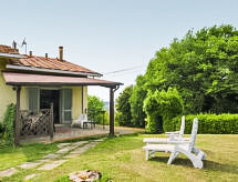 "Oleandro", 2 rom leilighet 50 m2. Enkelt og praktiskt møbler: 1 dobblet rom. Kjøkken/stue (miniovn, brødrister, vannkoker, mikrobølgeovn, frys, elektrisk kaffemaskin) med, spisebord og satelit-TV. Utgang til sitteplass i hagen. Dusj/bidé/WC. Oppvarming (ekstra). Sitteplass i hagen 12 m2, dekt. Fasiliteter: myggnett, høy barnestol barneseng for barn opp til 2 år. Internett (trådløs LAN [WLAN], gratis). Kjæledyr / hund tillatt 1 kjæledyr / hund tillatt. Med inngjerdet tomt. Den har en veranda. En parkeringsplass er tilgjengelig.- fasiliteter