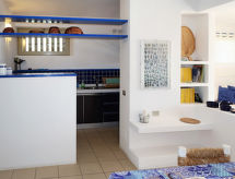 "La Vigna Blu", 3 rom leilighet 75 m2 i 1st etasje. Lys, komfortabelt og koseligt møbler: åpen stor stue/spisestue med, 1 dobbel sovesoffa, spisebord, satelit-TV og air-conditioning. Utgang til terrassen. 1 dobblet rom med, bad/bidèt/WC og el-radiator. 1 rom med 2 senger (80 cm). Lite, åpent kjøkken (ovn, oppvaskmaskin, 4 gassbrennere, brødrister, mikrobølgeovn, frys, elektrisk kaffemaskin). Dusj/bidé/WC. Oppvarming er ikke tilgjengelig på alle rom. Terrasse 15 m2 delvis dekt. Terrassemøbler. Utsikt av havet og havnen. Fasiliteter: vaskemaskin, høy barnestol barneseng (ekstra). Internett (trådløs LAN [WLAN], gratis). IUN:Q5059 For din velvære, nyt boblebadet i ferier. Klimaanlegget sørger for god romtemperatur. Fordi den følelsesvennlige faktoren spiller en viktig rolle og er viktig for oss. En oppvaskmaskin er tilgjengelig. Takket være vaskemaskinen finner du mindre klær å bære. Det er en mikrobølgeovn tilgjengelig.- Aktiviteter i nærheten
