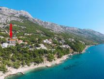 Marušići 14 km fra Omiš: Flermannsbolig "Lada". 20 km fra sentrum av Makarska, ved en høyde, 100 m fra sjøen, 100 m fra stranden, i en blindvei. Fellesbruk: tomt 500 m2, 1 badebasseng firkantet (7 x 5 m, dybde 150 cm dyp, Sesongåpent: 20.Mai. - 14.Okt.) med innbygdetrapper. Utendørs dusj. I hbrukt: internetilkobbling. 100 m lang bratt Tilgang med bil hele veien til hbrukt. Trapper til hbrukt. Parkering ved hbrukt. Butikk 200 m, supermarked 14 km, småstenstrand 100 m. Vennligst merk: flyplass 56 km av hbrukt. Objektnummer HR5020.641.1 ligger på samme tomt. Surfer venner pass opp, den lokale kysten har ideelle forhold for surfing.Interior