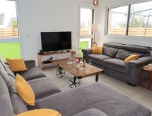 Fin enmannsbolig "Lagon bleu", med 2 etasjer, bygget i 2020. I området Skividan, 3 km fra sentrum av Guilvinec, 9 km fra sentrum av Pont l'Abbé. Privat: tomt 1'120 m2, velholdt hage (inngjerdet) med plen, svømmebasseng kantete, oppvarmt (7 x 3 m, dybde 150 cm, Sesongåpent: 02.Apr. - 01.Okt.) med overtrekk. Oppbevaringsrom tilgjengelig. Parkering (for 3 biler) på tomten. Supermarked 3 km, bakeri 2.3 km, sandstrand "plage de Skividan" 750 m. Sporthavn 2.5 km, seileskole 3 km. Attraksjoner i nærheten: Pointe de la Torche 12 km, Phare d'Eckmühl 12 km, Haliotika, Le Guilvinec 3.5 km, Baie d'Audierne 12 km, Quimper 31 km. Seiling anbefales. Lær mer om de beste seilruter på stedet.Interior