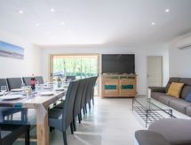 5 rom hus 120 m2. Moderne møbler: stue/spisestue med, TV og internasjonale TVkanaler (flatskjerms TV), air-conditioning og motoriserte persienner. Utgang til hagen, til terrassen. 1 rom med, 1 x 2 køysenger (90 cm, lengde 190 cm), 1 dobbeltseng (1 x 140 cm, lengde 190 cm). 1 rom med, 1 dobbeltseng (1 x 140 cm, lengde 190 cm). 1 rom med, 1 dobbeltseng (1 x 160 cm, lengde 200 cm). 1 rom med, 1 dobbeltseng (1 x 160 cm, lengde 200 cm). Åpent kjøkken (stekeovn, oppvaskmaskin, 5 keramiske kokeplater, brødrister, vannkoker, mikrobølgeovn, elektrisk kaffemaskin, Internet(Senseo + filtre), ekstra). Utgang til hagen. 2 dusjer/WC. Terrassemøbler, grill. Fasiliteter: vaskemaskin, strykejern. Internett (trådløs LAN [WLAN], gratis). Parkeringsplass. Vennligst merk: 1 lite kjæledyr / liten hund tillatt. Røykvarsler. Den har en baby seng. Det er en oppvaskmaskin.- fasiliteter