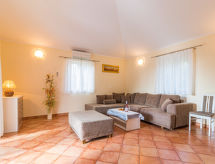 4 rom hus 112 m2 på 2 etasjer. Stue/spisestue med, 1 dobbel sovesoffa, åpen peis og satelit-TV (flatskjerms TV). Utgang til terrassen. 1 rom med, 1 dobbeltseng (160 cm). Utgang til terrassen. Åpent kjøkken (ovn, oppvaskmaskin, 4 keramiske kokeplater, brødrister, vannkoker, mikrobølgeovn, frys, elektrisk kaffemaskin). Dusj/WC. øverste etasje: 1 rom med, 1 dobbeltseng (160 cm), satelit-TV (flatskjerms TV), air-conditioning. Utgang til terrassen. 1 rom med 2 senger og satelit-TV (flatskjerms TV), air-conditioning. Dusj/WC. Varmluftsoppvarming. 3 terrasser dekt. Terrassemøbler, liggestoler. Fasiliteter: strykejern, myggnett, høy barnestol barneseng. Internett (trådløs LAN [WLAN], gratis). Vennligst merk: røykfritt hus. Max kjæledyr/små hunder tillatt 2 kjæledyr/små hunder tillatt. For å holde det kult om sommeren, har dette feriehuset aircondition. En terrasse er tilgjengelig. Huset er også utstyrt med peis. Det er et basseng. Et privat basseng er tilgjengelig. Huset er også utstyrt med en ovn.- fasiliteter