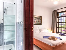 2 rom hus 72 m2. Passer for 2 voksne + 2 barn. Stue/spisestue med, 1 sovesoffa, åpen peis, satelit-TV, digital TV, radio, air-conditioning og varmluft oppvarming. 1 dobblet rom med, 1 dobbeltseng (160 cm, lengde 200 cm). Kjøkken (2 kokeplater, miniovn, ovn, brødrister, mikrobølgeovn, frys, elektrisk kaffemaskin) med bar. Dusj/WC. Terrasse 15 m2, dekt. God utsikt av havet. Fasiliteter: vaskemaskin, strykejern, høy barnestol barneseng, hårføner. Internett (trådløs LAN [WLAN], gratis). Parkeringsplass ved hbrukt. Velegnet for familier. VFT/MA/06680 Avslapping og livsstil i hagen er uunnværlig på ferie. Huset er også utstyrt med en terrasse. Den har et barnebasseng. Hvis været ikke spiller, er det også en TV.- fasiliteter
