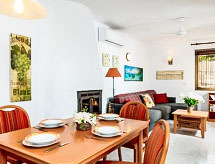 Bungalow "Las Buganvillas". 700 m fra sentrum av La Cala de Mijas, i utkanten, 7 km fra sentrum av Fuengirola, 20 km fra sentrum av Marbella, 200 m fra sjøen, 200 m fra stranden, vei å krysse. Fellesbruk: 1 badebasseng løyped (13 m i diameter, Sesongåpent: 01.Jan. - 31.Des. bassengets åpningstider: 09:00-21:00) med innbygdetrapper. Dusj/WC ved bassenget, barnebasseng. Privat: hage. Terrasse, hagemøbler, parkering ved hbrukt, offentlig parkering på veien. Supermarked 500 m, restaurant 50 m, bussholdeplass 200 m. Golfbane 3 km, rideskole 5 km. Attraksjoner i nærheten: Aquapark 7 km, Go Cart 7 km. Vennligst merk: hovedvei 200 m av hbrukt.Interior