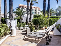 "Las Estancias", 3 rom bungalow. Romlig og lys, meget komfortabelt og koseligt møbler: stue/spisestue med, satelit-TV, digital TV, air-conditioning og varmluft oppvarming. 1 rom med, 1 dobbeltseng og el-radiator. Utgang til terrassen. 1 rom med 2 senger og el-radiator. Utgang til sitteplass i hagen, til badebassenget. Åpent kjøkken (ovn, oppvaskmaskin, 4 keramiske kokeplater, brødrister, vannkoker, mikrobølgeovn, frys, elektrisk kaffemaskin). Bad/WC. Terrasse, beliggenhet mot sør, sitteplass i hagen, beliggenhet mot nord-øst. Terrassemøbler. Fasiliteter: vaskemaskin, strykejern, hårføner. Internett (trådløs LAN [WLAN], gratis). Vennligst merk: røykfritt hus. AT-469279-A Et badekar er tilgjengelig. Det er en veranda.- fasiliteter