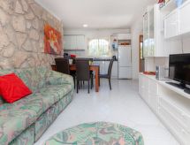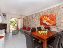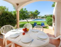 Urb. Tres Cales 4 km fra L'Ametlla de Mar: Fin, koselig rekkehus "Las Palmeras", med 2 etasjer. Ovenfor Las 3 Calas, utenfor området, 5.5 km fra sentrum av L'Ametlla de Mar, i en solrikt posisjon, 3 km fra sjøen, 3 km fra stranden. Fellesbruk: stor, vakker, velholdt hage med plen 2'700 m2, planter, 1 badebasseng nyre-formet (6 x 3 m, dybde 80- 190 cm dyp, Sesongåpent: 01.Jan. - 31.Des.). Barnebasseng, Underholdning av bassenget av eieren/gartneren. Privat: utendørs dusj. Parkering ved hbrukt på tomten, offentlig parkering på veien. Daglivarehandel 1.3 km, supermarked 1.3 km, restaurant 1.3 km, bar 1.3 km, togstasjon 5.5 km. Attraksjoner i nærheten: Parque Portaventura 48 km, parque Aquopolis 51 km, parque natura del Delta del Ebro 35 km, Tarragona 57 km, Reus 48 km, Barcelona 153 km. Vennligst merk: bil anbefales. Grupper med tenåringer- bare ved forespørsel. Eiendommen ligger i et attraktivt seilområde. Nyt den behagelige lokasjonen med vindkraft. Du kan ikke beskrive surfing. Du må oppleve surfing. Her er muligheten.Interior