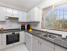 "Las Palmeras", 4 rom rekkehus 78 m2. Praktiskt og komfortabelt møbler: stue/spisestue med, åpen peis, satelit-TV, digital TV og flatskjerms TV. Utgang til terrassen. 1 rom med, 1 dobbeltseng (135 cm). Åpent kjøkken (ovn, oppvaskmaskin, 4 keramiske kokeplater, brødrister, vannkoker, mikrobølgeovn, elektrisk kaffemaskin). Dusj/WC. øverste etasje: 1 rom med, 1 dobbeltseng (135 cm). Utgang til balkongen. 1 rom med 2 senger (90 cm lengde 150 cm). Bad/WC. Liten terrasse. Terrassemøbler, grill. Vakker utsikt av svømmebassenget og hagen. Fasiliteter: vaskemaskin, strykejern, barneseng for barn opp til 2 år, hårføner. Internett (trådløs LAN [WLAN], gratis). Vennligst merk: bare TV DE, EN, FR. HUTTE000831 Huset er også utstyrt med en terrasse. Det er et basseng. Den har et barnebasseng. Hva ville et moderne kjøkken være uten mikrobølgeovn? Den som selvfølgelig er tilgjengelig.- Aktiviteter i nærheten
