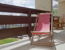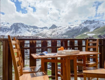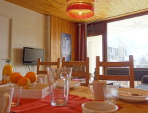 3 rom leilighet 50 m2 i 2nd etasje. Renovert, komfortabelt og vakkert møbler: stue/spisestue med, TV (flatskjerms TV), DVD. Utgang til balkongen, beliggenhet mot sør. 1 rom med, 1 dobbeltseng (140 cm). Utgang til balkongen, beliggenhet mot nord. 1 rom med, 2 x 2 køysenger (90 cm). Kjøkkenkrok (ovn, oppvaskmaskin, 3 keramiske kokeplater, mikrobølgeovn). Bad, sep. WC. Hærlig panoramautsikt av vannet, fjellene og skibakkene. Fasiliteter: Internett (trådløs LAN [WLAN], ekstra). Velegnet for familier. and Grande-Motte, on the south balcony and beautiful views of the lake Chevril on the north balcony. Please note: Non smokers only. En DVD-spiller er tilgjengelig.- fasiliteter