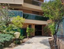 2 rom leilighet 40 m2 i 4th etasje. Komfortabelt møbler: stue/spisestue med, 1 dobbel sovesoffa (140 cm, lengde 190 cm), TV (flatskjerms TV), air-conditioning. Utgang til terrassen. 1 rom med 2 senger (90 cm lengde 190 cm). Utgang til terrassen. Åpent kjøkken (4 kokeplater, ovn, oppvaskmaskin, mikrobølgeovn, elektrisk kaffemaskin). Bad, sep. WC. Terrasse 14 m2. Terrassemøbler. Delvis utsikt av havet. Fasiliteter: vaskemaskin. Internett (trådløs LAN [WLAN], gratis). Garasje. Vennligst merk: røykvarsler. 06029003843WF Residence. Bad i huset. Objekt med heis. Klimaanlegget sørger for god romtemperatur. Fordi den følelsesvennlige faktoren spiller en viktig rolle og er viktig for oss. Den har en overbygd parkeringsplass. Den har et trådløst lokalnettverk (WLAN).- Kjennetegn ved boligen