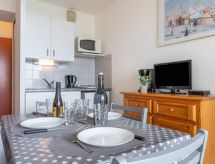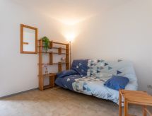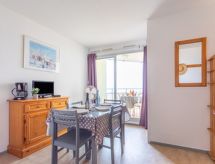 Canet Plage: Residens "Le Beach", med 8 etasjer. I området Canet Sud, 50 m fra sjøen, 50 m fra stranden. I anlegget: heis. Offentlig parkering på veien. Butikk 50 m, kjøpesenter 8 km, restaurant, bakeri 50 m, togstasjon "Perpignan" 12 km, park "Aqualand St Cyprien" 12 km, dykkesenter 18 km, utendørs svømmebasseng 3 km, svømmehall 3 km, sjøen Etang de Canet 1 km. Sporthavn 5 km, golfbane(18 hull) 8 km, minigolf 1 km. Attraksjoner i nærheten: Perpignan 12 km, Collioure 25 km, Banyuls 37 km, Espagne 35 km, Andorre 180 km, Barcelone 200 km. Velkjente innsjøer: Lac de Villeneuve de la Raho 19 km, Lac de St Jean Pla de Corts 39 km, Gorges du Gouleyrous 42 km. Turstier Abbaye de St Martin du Canigou 70 km, Pic du Canigou 77 km, Lac des Bouillouses 105 km. Vennligst merk: underholdning under høysesongen. Det er flere lignende leiligheter i samme hus.Interior