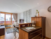 2 rom leilighet 42 m2 i 3rd etasje. Fullstendig renovert, meget praktiskt og smakfullt møbler: stue/spisestue med, 1 sovesoffa (140 cm), TV (flatskjerms TV). Inngang med, 1 x 2 køysenger (80 cm). 1 rom med, 1 dobbeltseng (1 x 160 cm), TV (flatskjerms TV). Kjøkkenkrok (oppvaskmaskin, 3 keramiske kokeplater, elektrisk kaffemaskin, Internet(nespresso), ekstra, kombinert mikrobølgeovn). Bad, sep. WC. Balkong 4 m2, beliggenhet mot sør. Meget vakker panoramautsikt av fjellene og skibakkene. Fasiliteter: Internett (trådløs LAN [WLAN], gratis). Vennligst merk: røykfri bolig. Røykvarsler. Residence. En balkong er tilgjengelig. En barneseng er tilgjengelig.- Kjennetegn ved boligen