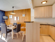 2 rom leilighet 40 m2 i 3rd etasje. Praktiskt og koseligt møbler: stue/spisestue med, 1 uttrekkbar seng (2 pers. 2 x 80 cm), TV og DVD. Utgang til balkongen, beliggenhet mot sør. 1 rom med, 2 x 2 køysenger (80 cm). Utgang til balkongen, beliggenhet mot sør og beliggenhet mot vest. Kjøkkenkrok (oppvaskmaskin, 4 keramiske kokeplater, elektrisk kaffemaskin, Internet(Nespresso), ekstra, kombinert mikrobølgeovn). Bad, sep. WC. Meget vakker panoramautsikt av fjellene og skibakkene. Fasiliteter: strykejern, barneseng. Internett (trådløs LAN [WLAN], gratis). Vennligst merk: røykfri bolig. Røykvarsler. Residence. Vær oppmerksom på at røykeforbudet gjelder hele bygningen. Et trådløst lokalnettverk (WLAN) er tilgjengelig. En DVD-spiller er tilgjengelig.- Kjennetegn ved boligen