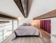 2 rom leilighet 35 m2 på 2 etasjer i 2nd etasje. Stue/spisestue med, TV (flatskjerms TV), air-conditioning. Åpen alkove med, 1 x 2 køysenger (90 cm, lengde 190 cm). Åpent kjøkken (oppvaskmaskin, 2 keramiske kokeplater, mikrobølgeovn). Bad, sep. WC. øverste etasje: åpen galleri med skråtak, Lav dørhøyde 96 cm 122 cm med, 1 dobbeltseng (140 cm, lengde 200 cm). Stor balkong, beliggenhet mot sør-øst. Terrassemøbler. Vakker god utsikt av havet og landskapet. Fasiliteter: Internett (trådløs LAN [WLAN], ekstra). Vennligst merk: velegnet for familier leilighet vendt mot veien. Kjøleskap uten frys. Røykvarsler. Residence. Det er en balkong. Den har en baby seng. Huset er også utstyrt med parkeringsplass.- Kjennetegn ved boligen