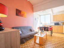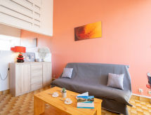 Liten residens "Le Jules Verne", med 3 etasjer. I området Mont Saint Martin, 800 m fra sentrum, i en solrikt posisjon, 1.7 km fra sjøen, 1.7 km fra stranden. Parkering på tomten. Butikk, daglivarehandel 300 m, supermarked 3 km, bakeri 1 km, sandstrand "Richelieu" 1.7 km. Sporthavn 700 m, golfbane(27 hull) 600 m, tennis 2 km. Attraksjoner i nærheten: Aqualand 800 m, Ile des Loisirs 1.5 km, Grande Roue 1.2 km, Musée de l'Ephèbe 2 km. Ridning er en populær aktivitet her, ideell for de som elsker hester og natur.Interior
