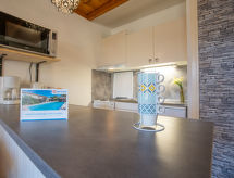 "Lac Blanc 101", 1 rom leilighet 28 m2 i 1st etasje, beliggenhet mot sør. Komfortabelt og vakkert møbler: stue/spisestue med, 1 uttrekkbar seng (2 pers. 2 x 80 cm, lengde 190 cm), TV (flatskjerms TV), el-radiator. Inngang med, 1 x 2 køysenger (80 cm, lengde 190 cm). Kjøkkenkrok (4 kokeplater, ovn, mikrobølgeovn, elektrisk kaffemaskin). Bad, sep. WC. Stor balkong 4 m2, beliggenhet mot sør. Vakker utsikt av fjellene, landskapet og området. Fasiliteter: Internett (trådløs LAN [WLAN], ekstra). Vennligst merk: max kjæledyr / hund tillatt 1 kjæledyr / hund tillatt. Røykvarsler. Residence. Du kan ta heisen til gulvet i leiligheten.- Kjennetegn ved boligen
