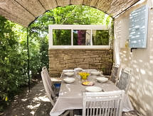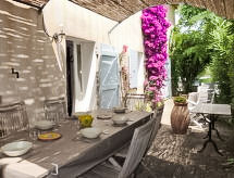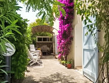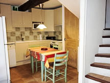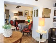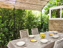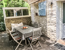 "Le Mazet", 4 rom hus 86 m2 på 2 etasjer. Komfortabelt møbler: stue/spisestue med, TV og internasjonale TVkanaler (flatskjerms TV), CD-spiller. 1 rom med, 1 dobbel sovesoffa (130 cm, lengde 190 cm), separat WC og dusj. Utgang til terrassen. Kjøkken (stekeovn, oppvaskmaskin, 4 keramiske kokeplater, mikrobølgeovn, elektrisk kaffemaskin). øverste etasje: 1 rom med, 1 x 2 køysenger (90 cm, lengde 190 cm). Sammenhengende rom med, 1 dobbeltseng (140 cm, lengde 190 cm). Dusj, sep. WC. El-oppvarming. Stor terrasse 30 m2, beliggenhet mot sør terrasse 15 m2, beliggenhet mot vest. Terrassemøbler, elektrisk grill (flyttbar). Fasiliteter: vaskemaskin, strykejern, barneseng for barn opp til 2 år. Internett (trådløs LAN [WLAN], gratis). Parkeringsplass plass nr 294. Vennligst merk: røykvarsler. Huset i boligen lukket av en elektrisk port. Tilgang til det doble soverommet er gjennom rommet med køyesenger . Tilgang til første etasje er fra utsiden. 83112000272FB En tilknyttet idyllisk hage inviterer deg til å ligge i solen.- fasiliteter